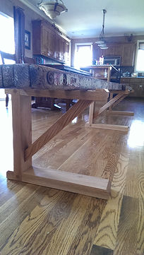 Made from reclaimed painter's walk plank and new red oak supports